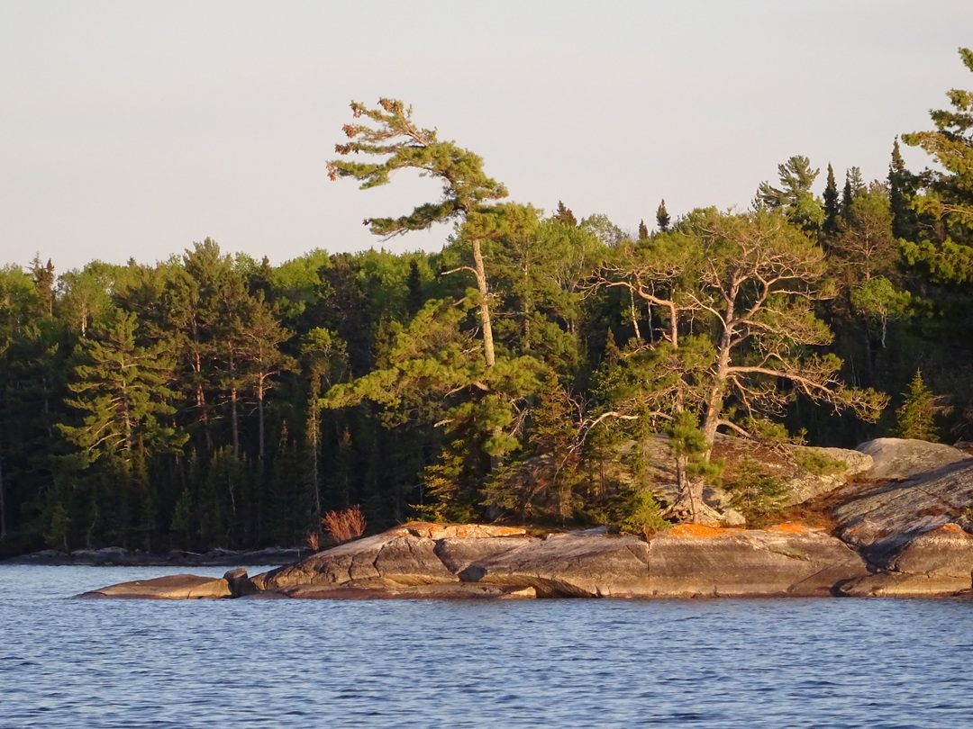 Wind-swept white pines holding fast to bedrock